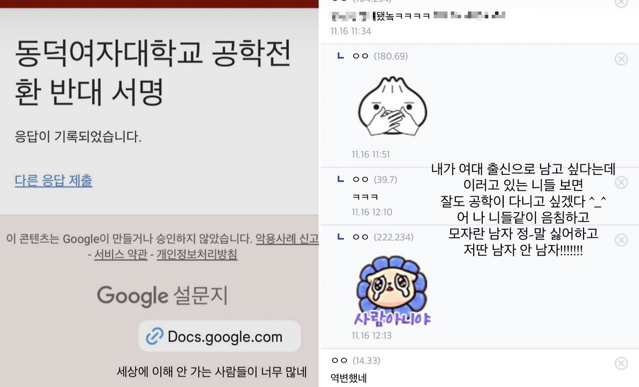 동덕여대 학생들의 의견